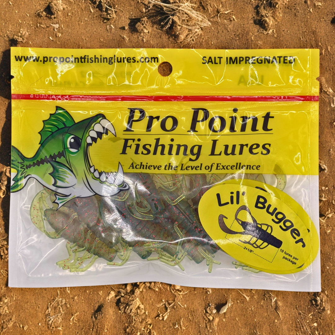 Pro Point Fishing Lures has a history of creating, developing, and manufacturing innovative fishing baits for anglers who demand soft baits that are original - for soft baits that various species of fish have not yet seen or experienced. The new and revolutionary creature bait and craw soft bait "The lil Buger" is designed to catch various types of bass - largemouth bass, smallmouth bass, and spotted bass - in the toughest fishing conditions. We think these motor oils red flake 1.75” will catch monster perch.